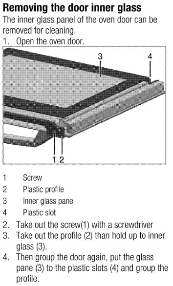 Hi Took frame off oven door to clean between glas panel now can't get the glass panel to click up into position Thanks Mike
